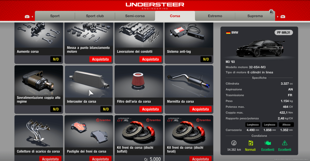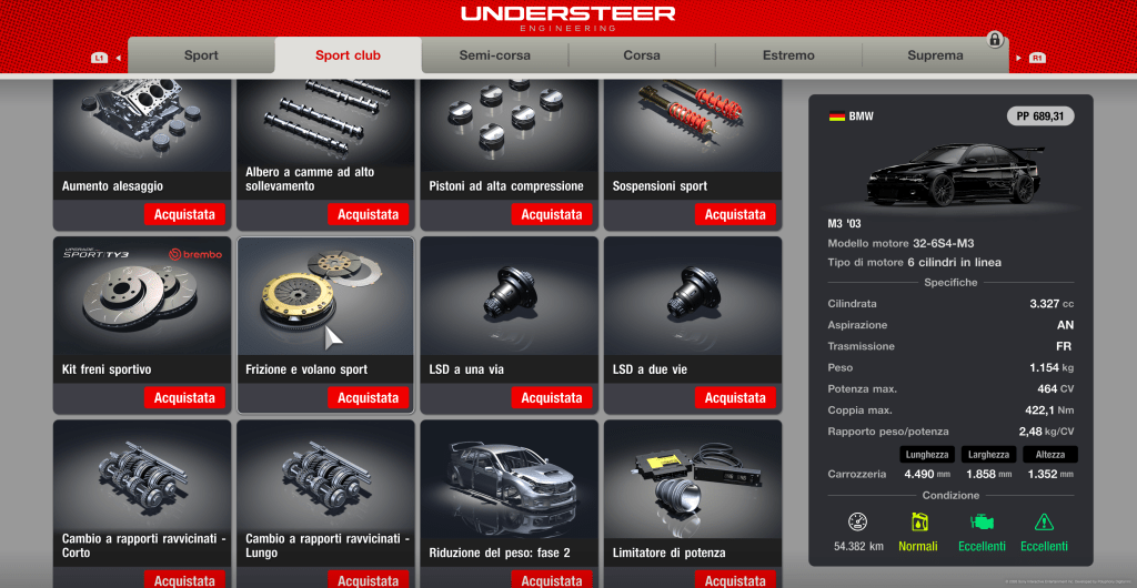Entra in ogni sezione (sospensioni, differenziale, trasmissione, ecc.)